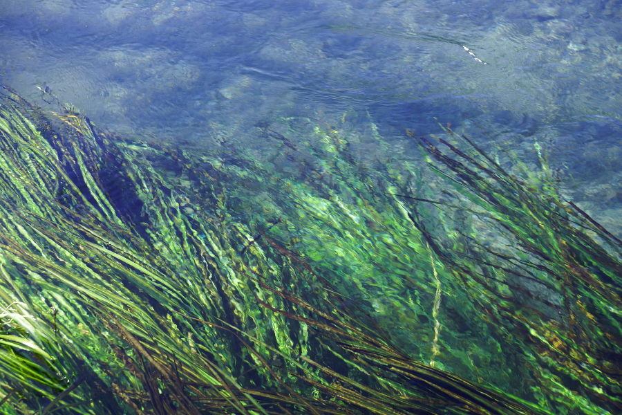 The river was flowing from a recent rain so all of the wild rice grass in this photo was just under the surface.